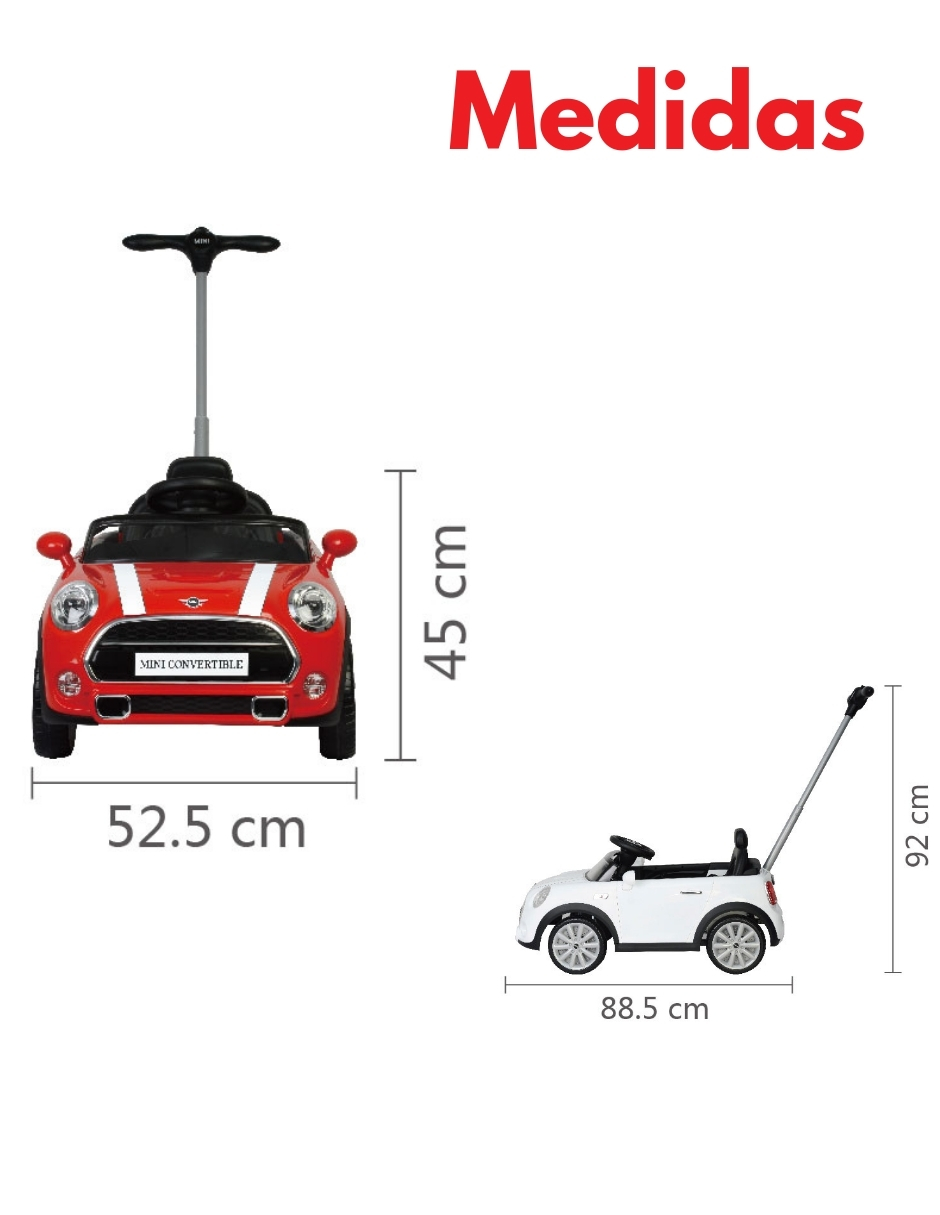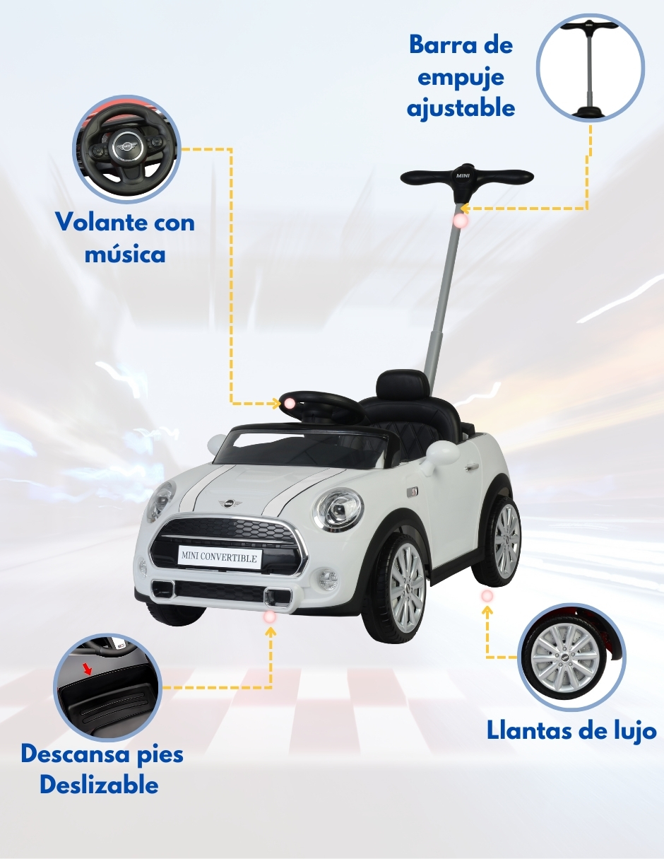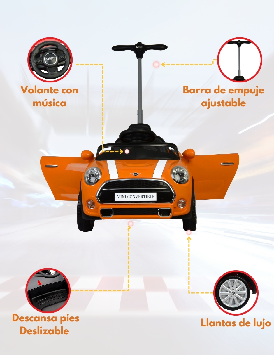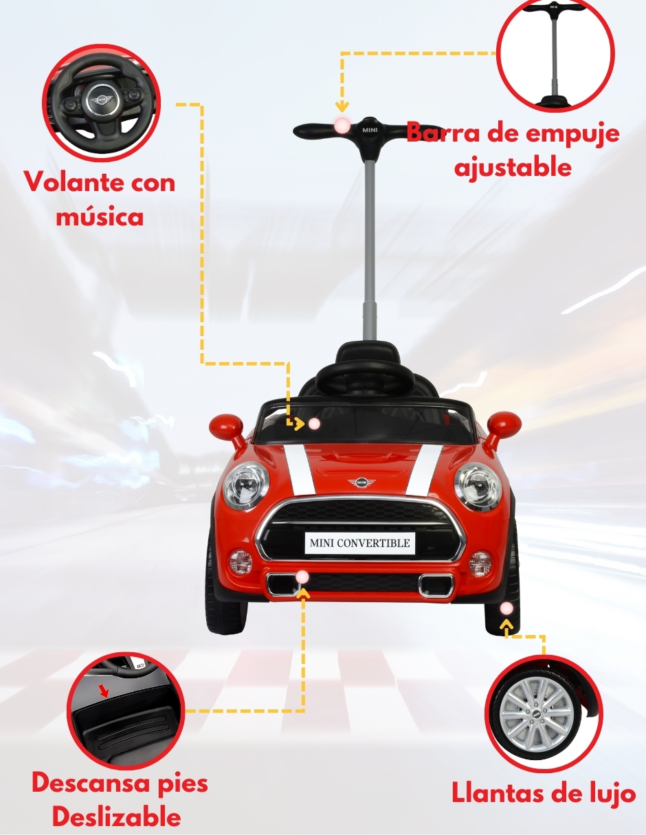 6 MINI COOPER Convertible – Carros Montables Para Niños – Juguetes para niños – Coche de Empuje Con Música y Claxón – Barra de Empuje Ajustable – Coche Montable Niños Función 3 En 1 – Officially licensed by MINI